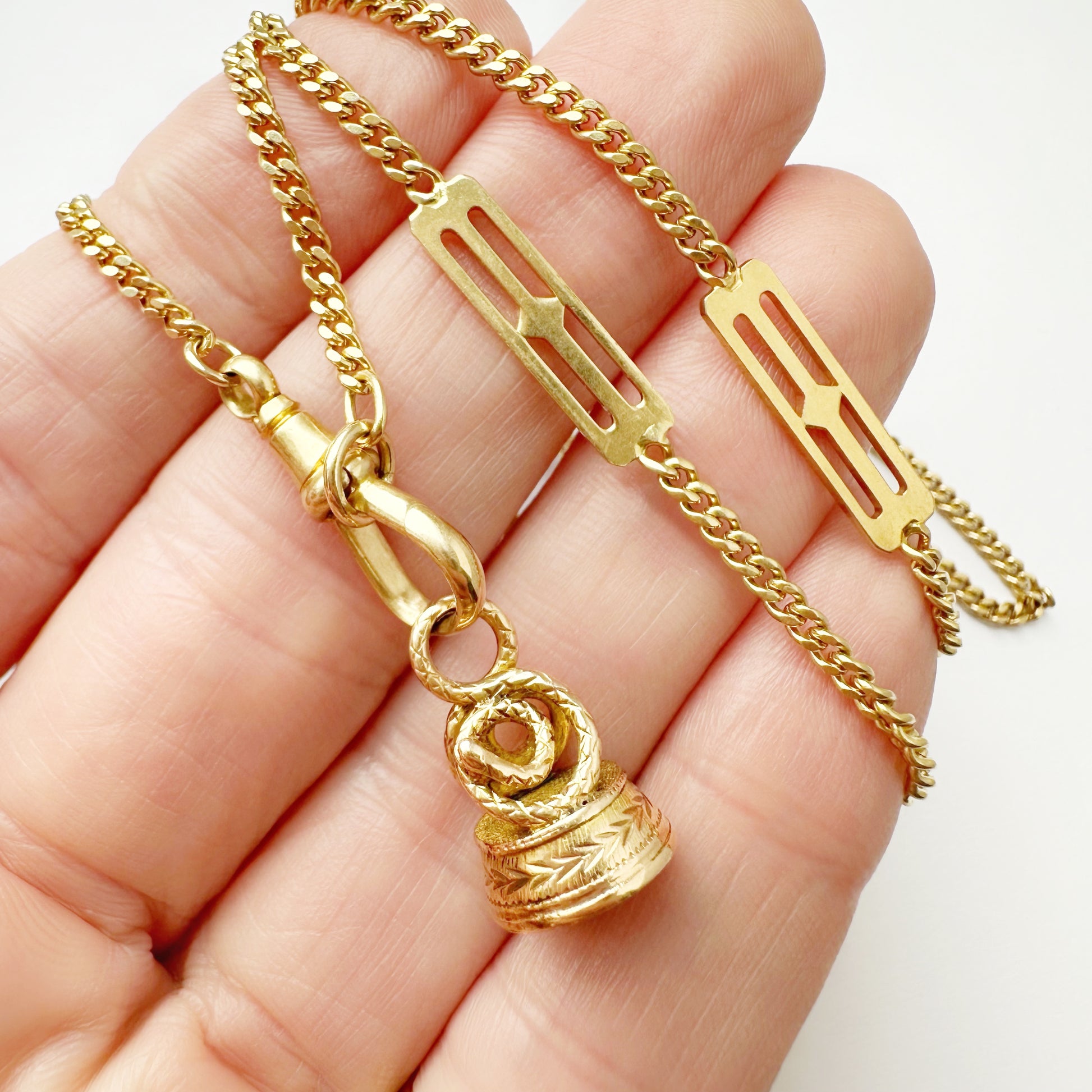 Made from 15ct gold & malachite with the most intricate, handmade details. Every millimetre of this fob is covered in design.